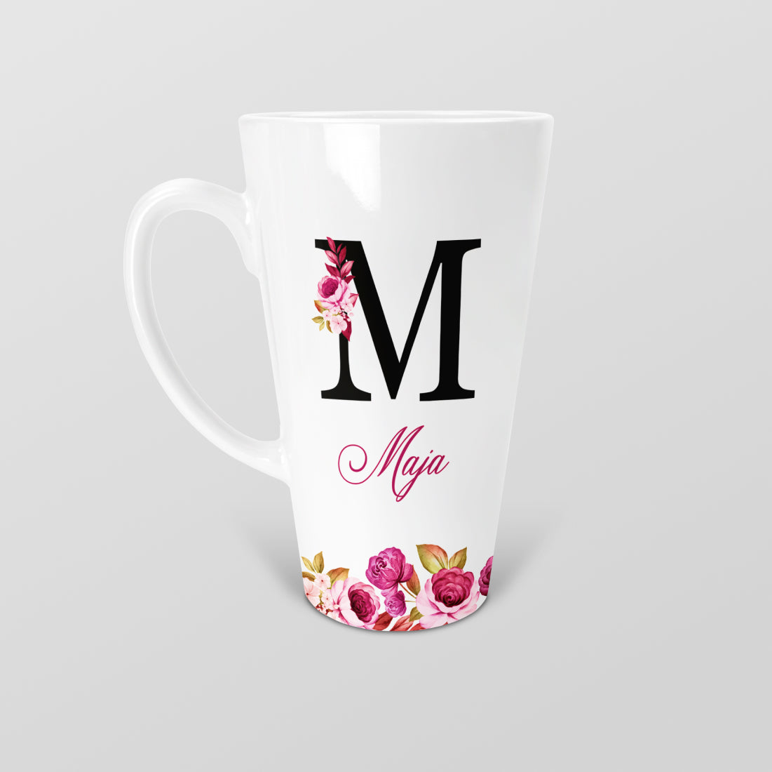 Personalizirana visoka skodelica s ciklamnimi cvetovi.